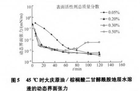 2.5棕榈酸二甘醇酰胺降低大庆原油/水界面张力的性能