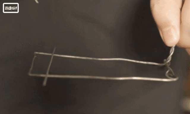 动图中的铁丝本来同时受到两侧肥皂膜的吸引,而当一侧的肥皂膜被刺破时,铁丝立马滚向另一侧,而吸引着它滚动的正是存在于肥皂膜表面的拉力—表面张力。
