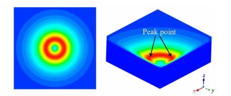 电弧剪切应力的存在是由于电弧等离子体中既有动能又有动量。当电弧等离子体从熔池中心撞击熔池时,熔池表面会受到向外的剪切应力。类似于表面张力,熔池表面的剪切应力促使液态金属向外流动。它通常在静止焊接或低速焊接过程中呈轴对称分布,如图3所示,从电弧中心到边界,电弧剪切应力先急剧增加后减小。在高焊接速度下,电弧沿焊接方向变形,产生非轴对称分布的电弧剪切应力,此时可以假设电弧剪切应力分布在一个双椭圆区域。