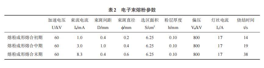 (1)试验结果吻合熔粉理论模型,在熔合初期电子束预热工艺下,离散的粉末微小粒径的颗粒几乎完全熔入大颗粒当中,且颗粒与颗粒之间呈凝聚态结构。