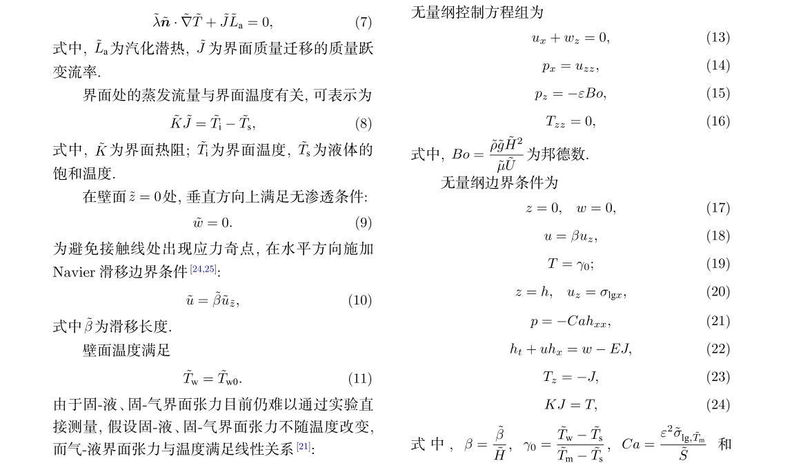 无量纲边界条件为无量纲形式的界面张力与温度关系为