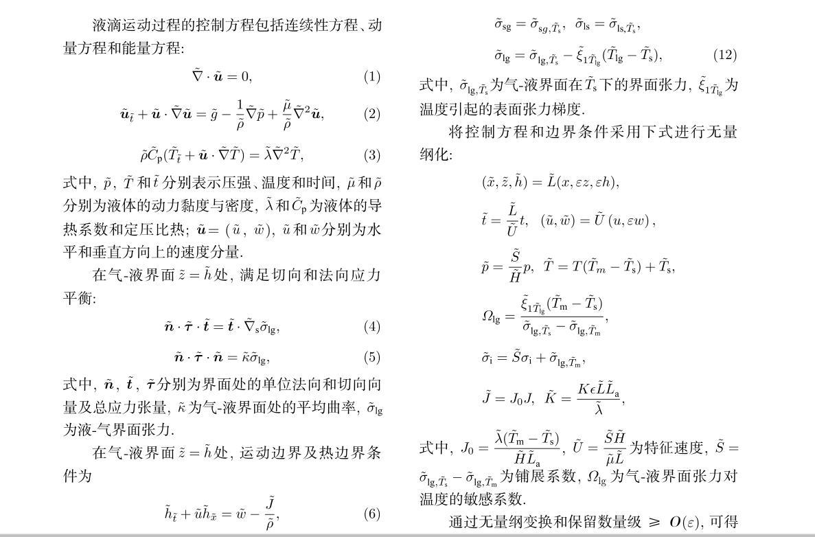 液滴运动过程的控制方程包括连续性方程、动量方程和能量方程:
