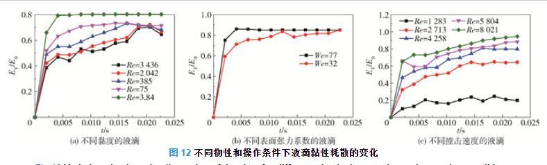 图12不同物性和操作条件下液滴黏性耗散的变化