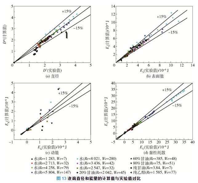图13液滴直径和能量的计算值与实验值对比