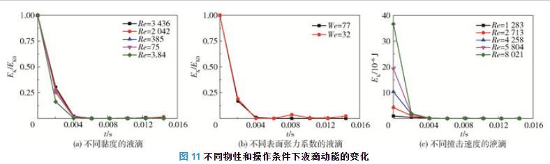图11不同物性和操作条件下液滴动能的变化