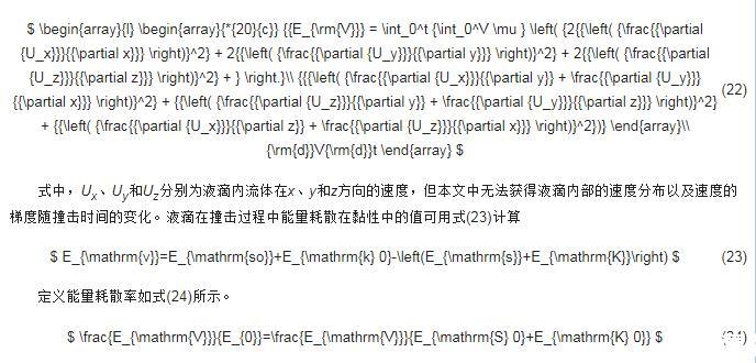 可用式(22)计算液滴在撞击过程中能量耗散在黏性中的值