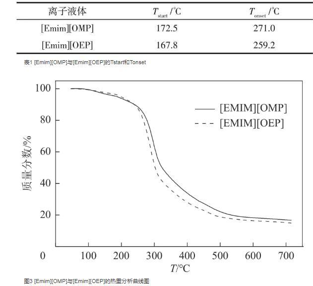 表1[Emim][OMP]与[Emim][OEP]的Tstart和Tonset