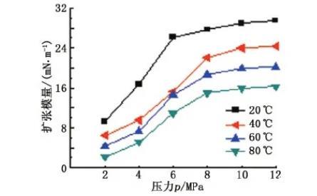图7不同温度下扩张模量随压力的变化关系