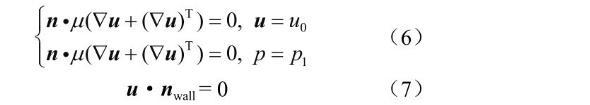 式中n表示固体壁面的单位法向量;u0表示入口处的速度,m/s;p1表示出口处的压力,Pa,nwall表示封闭边界的单位法向量。
