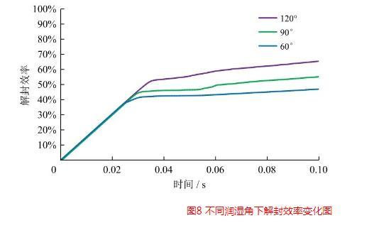 图8不同润湿角下解封效率变化图