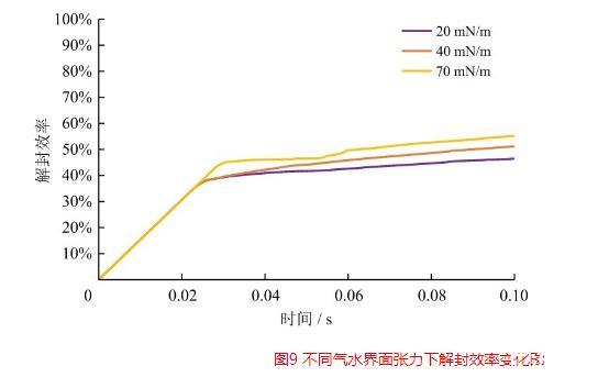 图9不同气水界面张力下解封效率变化图