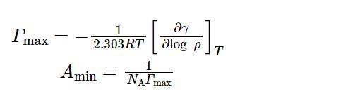 通过铂环法在室温下进行表面张力测定,参考GB/T 5549-2010。绘制出表面张力-浓度对数(γ-lg c)曲线。使用公式(1)和(2)对饱和吸附量(Гmax)和单个分子占据最小表面积(Amin)进行计算。
