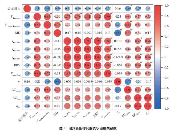 图4泡沫各指标间的皮尔逊相关系数