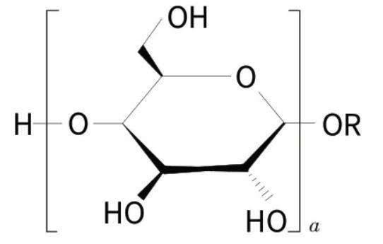 烷基糖苷(APG,结构式如下,其中a是平均聚合度)是一类可生物降解的天然非离子表面活性剂,被国际公认为“绿色”功能表面活性剂。烷基糖苷具有优良的配伍性能,起泡性好(泡沫丰富细腻),耐强碱和电解质,有良好的增稠能力,与皮肤相容性好,无毒,刺激性极低。