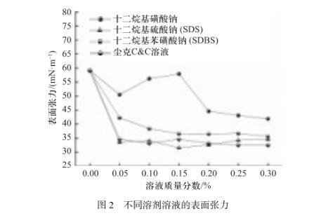 图2不同溶剂溶液的表面张力