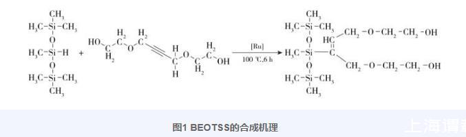 丁炔二醇乙氧基化物(BEO)分子结构中含有炔基和两个醇羟基,具有低泡和润湿性好的优点,在涂料工业中可配合三硅氧烷表面活性剂作为润湿剂和流平剂。由于BEO分子中具有不饱和的炔基,可与七甲基三硅氧烷及含氢聚硅氧烷发生硅氢加成反应,合成具有两条亲水基团的有机硅表面活性剂。所得产物结合了有机硅表面活性剂和炔二醇表面活性剂的优点,在消泡性、润湿性、耐水解性方面更有优势,近年来逐渐受到研究者的关注。