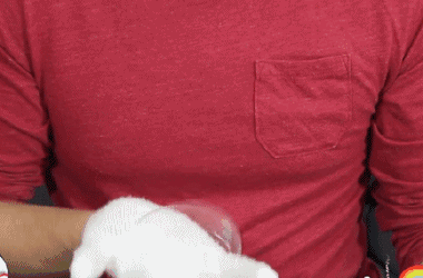 戴上手套能把泡泡一次又一次地弹起来,这一方面是因为干净的手套杜绝了泡泡与人手上油脂的接触,避免油脂改变泡泡膜的表面张力,导致泡泡破裂;另一方面也是因为纤维织物表面孔隙较多,和泡泡的接触面积小,所以也不容易附着。