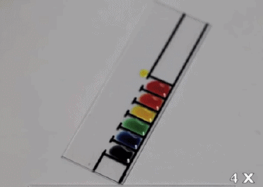 这个难度比较高,不过现象非常有意思。在这里使用的是含有丙二醇和水的液体食品色素,这些液滴经过不同程度的稀释。在非常洁净的玻璃片上,它们因为蒸发而产生表面张力的变化,从而出现彼此“追逐”的现象。详情: