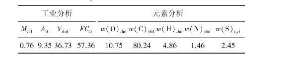 试验采用山东能源新矿集团内蒙古能源中心选煤厂浮选精煤,经充分混合晾干后,密封保存待用。煤质分析见表1。由表1可知,样品灰分较低,仅为9.35%。元素分析中氧含量为10.75%,主要来自煤中的无机矿物质和煤表面的一些含氧基团,煤中的无机矿物质和含氧基团与水能够形成较强的氢键作用,使煤样显现出亲水性,且水分不易排出。