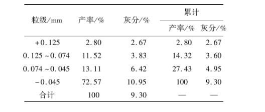 表2浮选精煤样品粒度组成