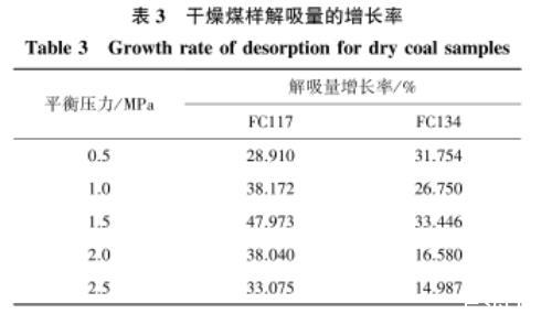 表3干燥煤样解吸量的增长率