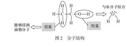 液滴爆炸现象的第一个阶段混合液滴在疏水性物质上先扩散后停止,为解释这一阶段,先从分子结构入手。乙醇是一种弱极性分子,乙醇中的羟基亲水,烃基亲油。宏观上乙醇在油表面的接触角小于90°,因此乙醇可以在油表面扩散,也就是说当混合液体中酒精浓度超过某一阈值,液滴扩散。当酒精蒸发时,液滴外围变得富含水,外围局部酒精浓度小于阈值,扩散停止。