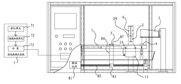 [0018]在一些实施方式中,还包括清洗液供应系统,清洗液供应系统包括净化单元、恒温加热单元和泵体。清洗液通过净化单元净化并通过恒温加热单元进行加热后,再经由泵体供应到清洗槽当中。其有益效果是,先通过净化单元,可以预先清除掉清洗液当中可能存在的油。另外,通过恒温加热单元可以将清洗液加热到一定的温度。因为温热状态的清洗液,可以实现更加的油脂清除能力,从而可以将样品上的油更方便且更完全的清洗下来。