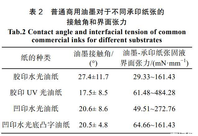 表2普通商用油墨对于不同承印纸张的接触角和界面张力
