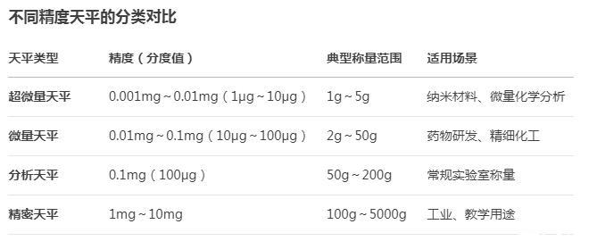 不同精度天平的分类对比