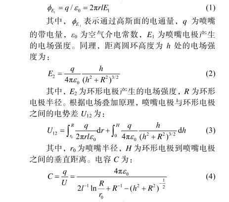 其中,r0为喷嘴半径,H为环形电极到喷嘴电极之间的垂直距离。电容C为: