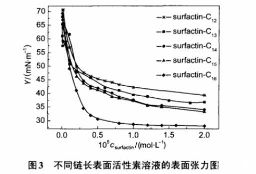 图3不同链长表面活性素溶液的表面张力图