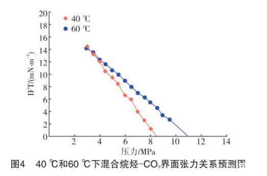 (1)烷烃组分。对比文献的结果发现,40℃和60℃下所得到的MMP值均小于文献值,其结果对比见表3。