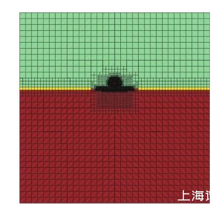5)限制2)—4)条规则最小加密层数的加密区间为:Y向液滴中心上方2R至水面下方4R;x向对称轴左右4R内的矩形内,以提高计算效率。
