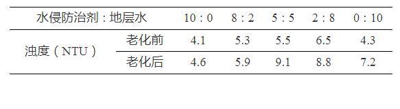 表2水侵防治剂与地层水的配伍性