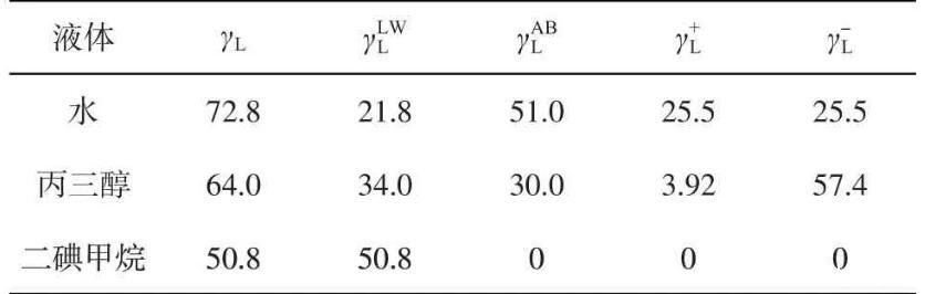 根据DLVO扩展理论,首先分别通过式(5)和式(6)计算LW相互作用自由能(和AB相互作用自由能()。然后,通过式(7)计算去离子水溶液中的液-固界面作用能()。
