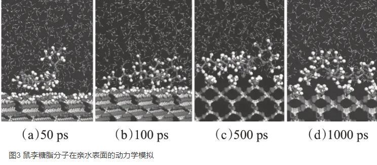 图3鼠李糖脂分子在亲水表面的动力学模拟