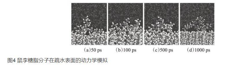 图4鼠李糖脂分子在疏水表面的动力学模拟