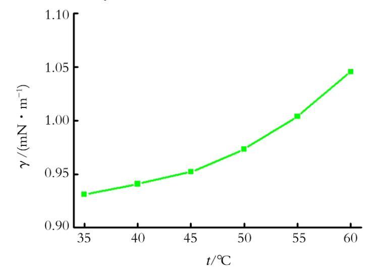 (3)随着温度的升高,腰果酚醛树脂嵌段聚醚CPFE的界面张力增大,CPFE作为破乳剂适合在低温环境下使用。