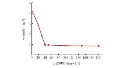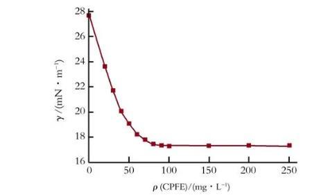 25℃条件下,CPFE水溶液的表面张力与质量浓度的关系曲线如图1所示。