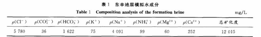 实验原料为胜利油田东辛采出原油。航空煤油为北京化学试剂公司,室温下与重蒸后的去离子水的界面张力约为40 mN/m;实验用水为经重蒸后的去离子水配制的东辛地层模拟水,其主要成分见表1。
