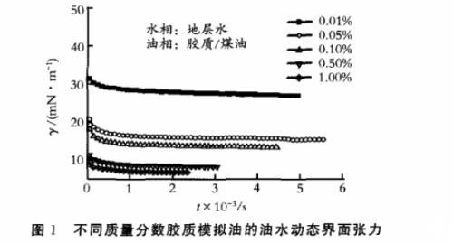 图1不同质量分数胶质模拟油的油水动态界面张力