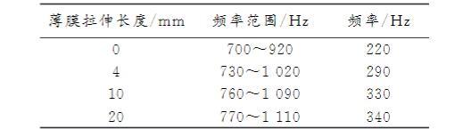 表3薄膜拉伸长度与吸声系数>0.6对应的频率范围表