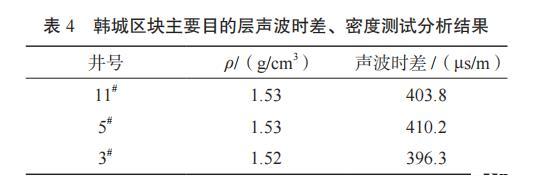 表4韩城区块主要目的层声波时差、密度测试分析结果