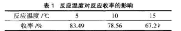 由表1可见,5℃时,反应收率最高,但考虑到5℃以下实验室现有条件很难达到,因此不再做延伸实验,选择最佳反应温度为5℃。