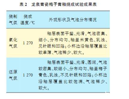 龙泉青瓷的烧制结果见表2。