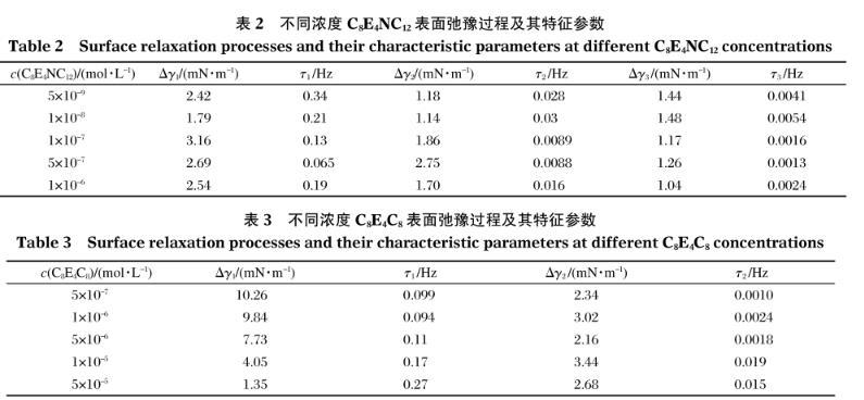 表2不同浓度C8E4NC12表面弛豫过程及其特征参数