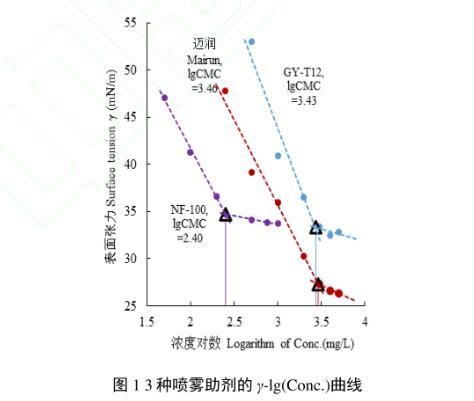 图1 3种喷雾助剂的γ-lg(Conc.)曲线