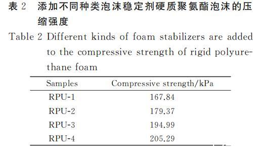 表2添加不同种类泡沫稳定剂硬质聚氨酯泡沫的压缩强度