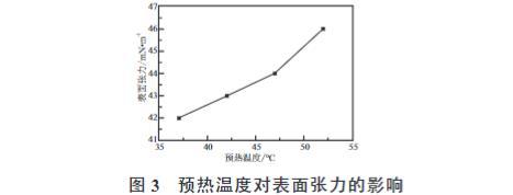 2.4 电晕预热温度对BOPP薄膜表面张力的影响