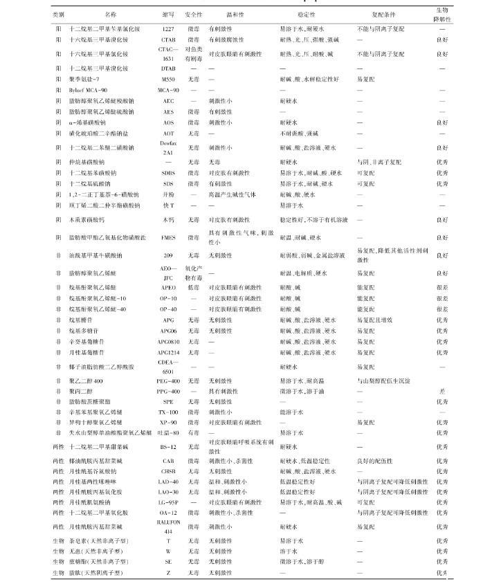 常见表面活性剂分类、性质、水溶液润湿性、与表面张力间的关系